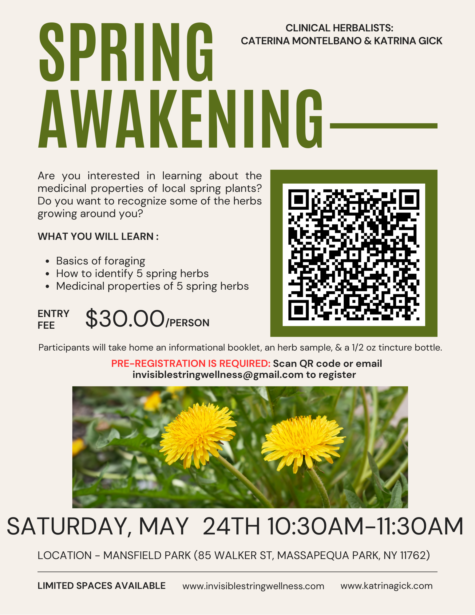 Caterina taught about herbs and practices for relaxation with fellow clinical herbalist, Katrina Gick. In their work with clients they’ve seen a common theme: folks are stressed and have a hard time relaxing and resting even when they do have free time. And so this workshop was born! Participants learned about 5 herbs that support authentic relaxation. They got to smell and taste each herb, and then formulate their own tea blend to take home.
